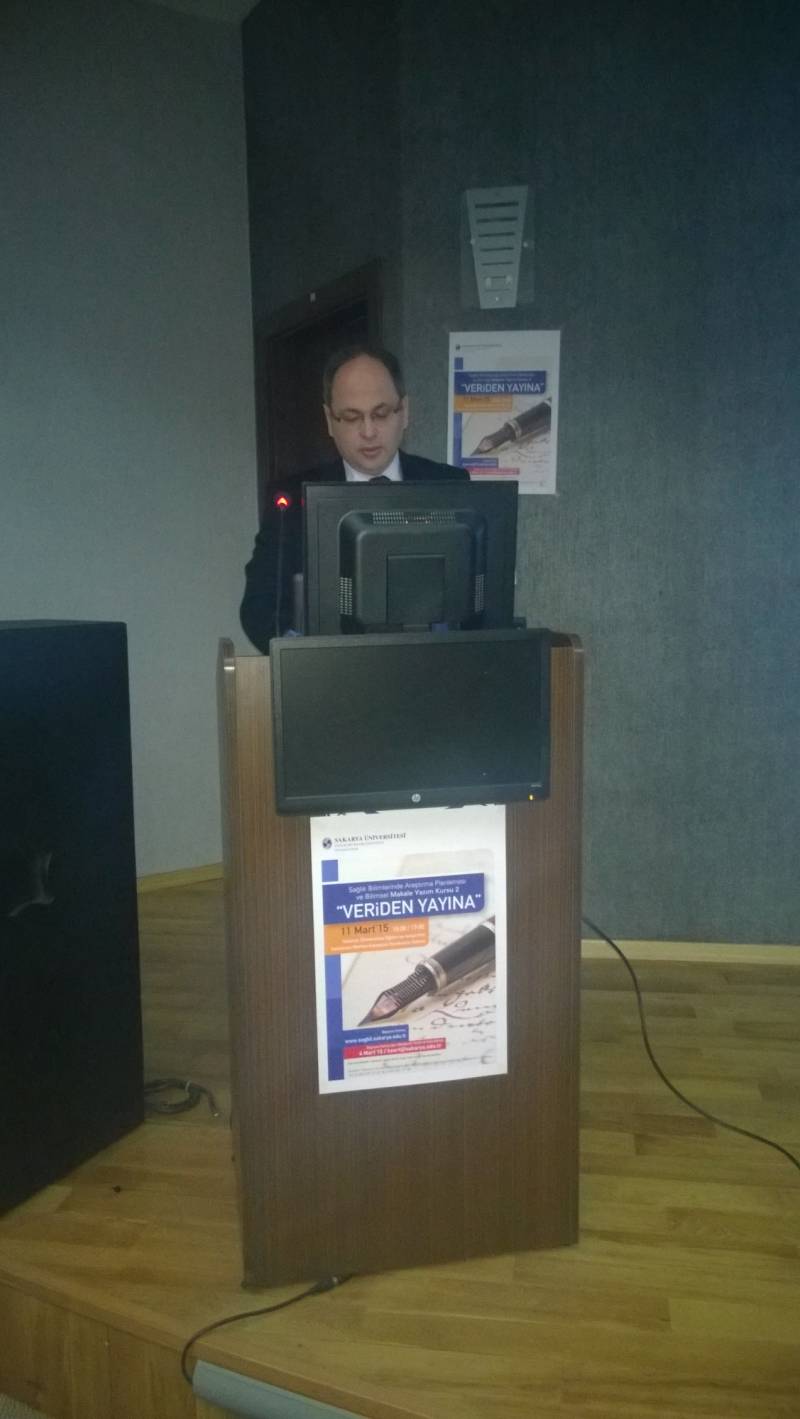 "Sağlık Bilimlerinde Araştırma Planlaması ve Bilimsel Makale Yazım Kursu 2" 11 Mart 2015 Sakarya Üniversitesi Eğitim ve Araştırma Hastanesi Merkez Kampüs Konferans Salonunda gerçekleştirilmiştir.